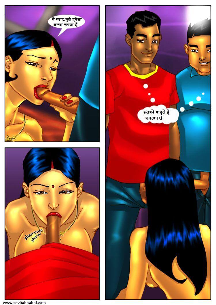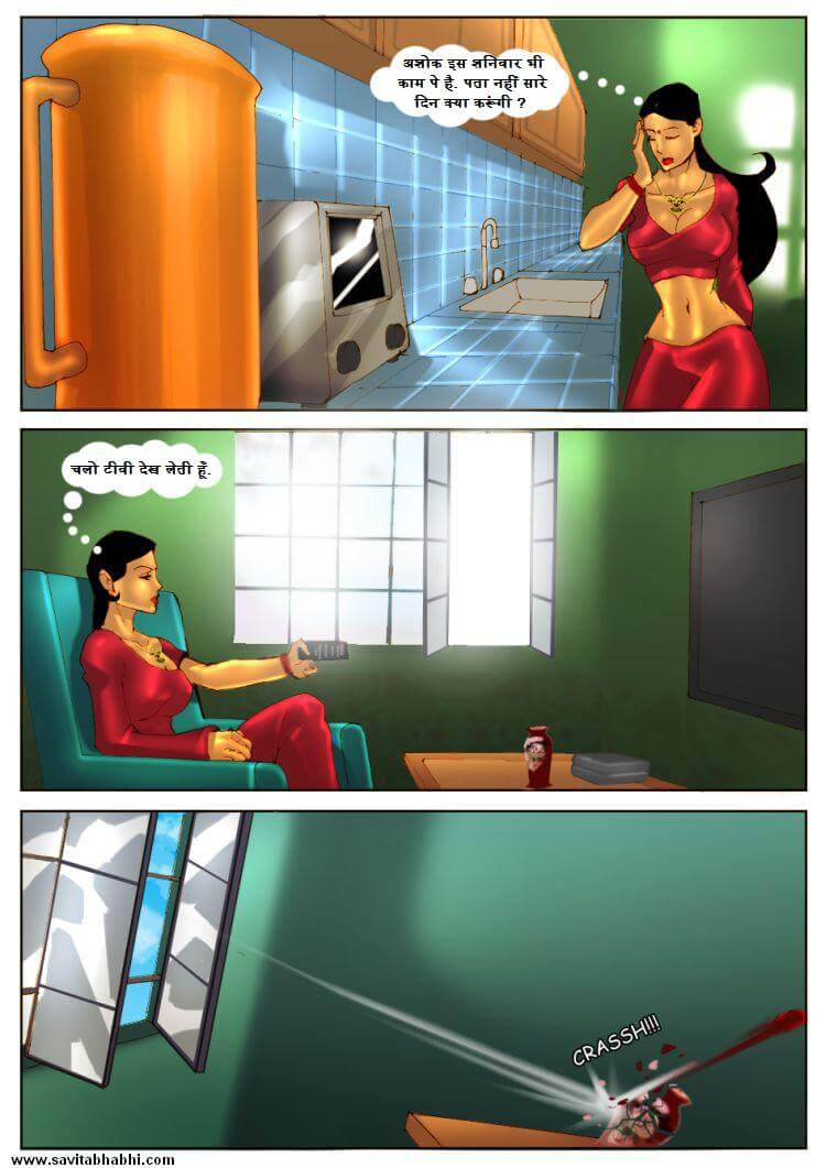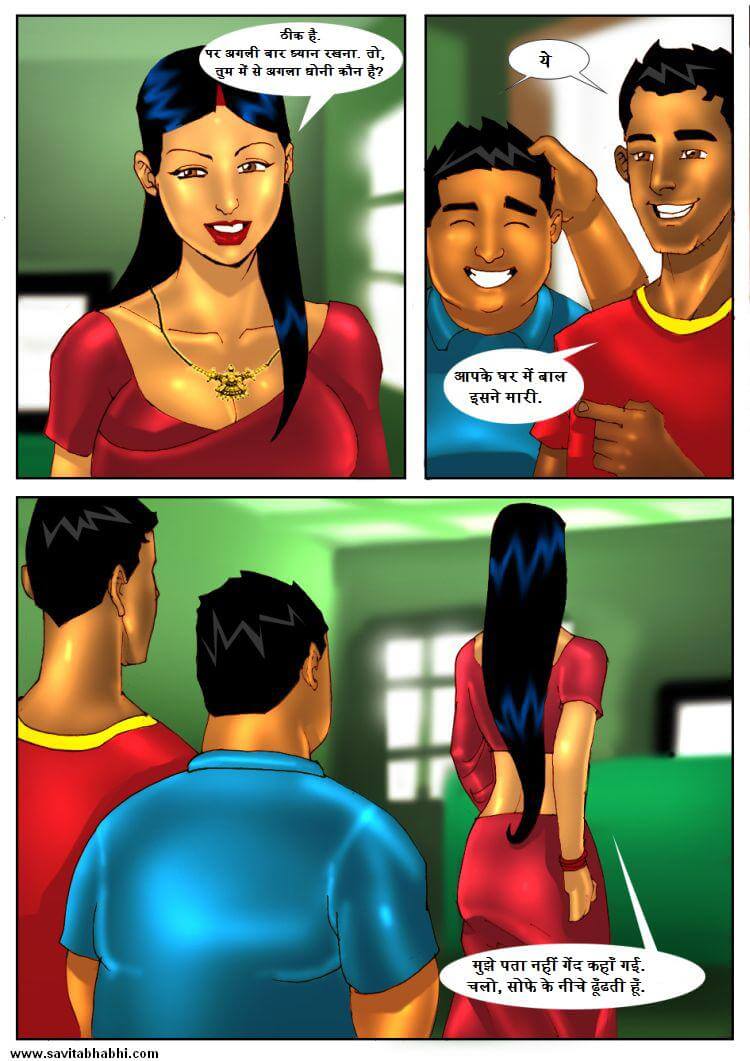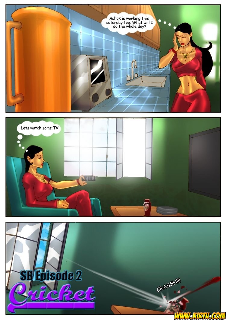 Savita Bhabhi is alone at home while her husband is at work. Suddenly, a cricket ball flies through her window. Two cute young neighbors come to her door to get it back. Savita is wearing a tight blouse and short skirt that shows off her big boobs and deep cleavage. The boys get really turned on seeing her like that. Savita feels naughty too and wants some fun. She tricks one boy into helping her reach something high up, and soon things get very hot. The three of them end up in a steamy threesome full of excitement and pleasure in this classic free episode.