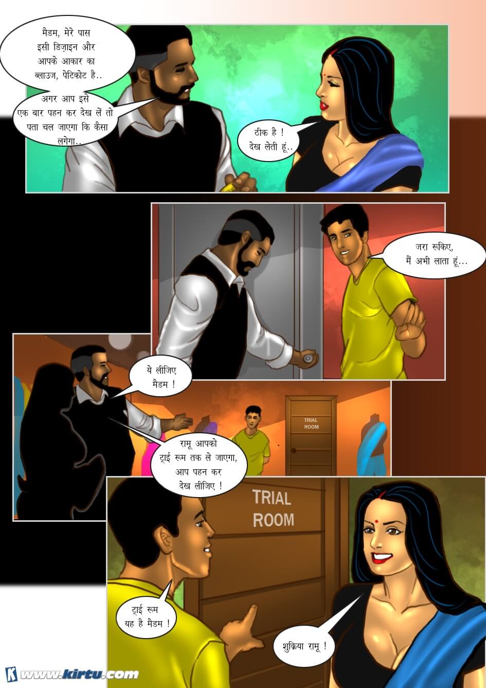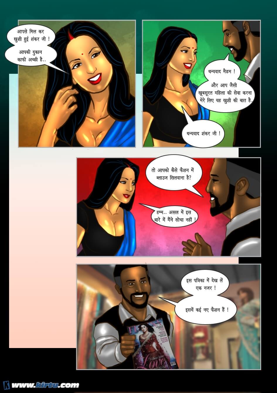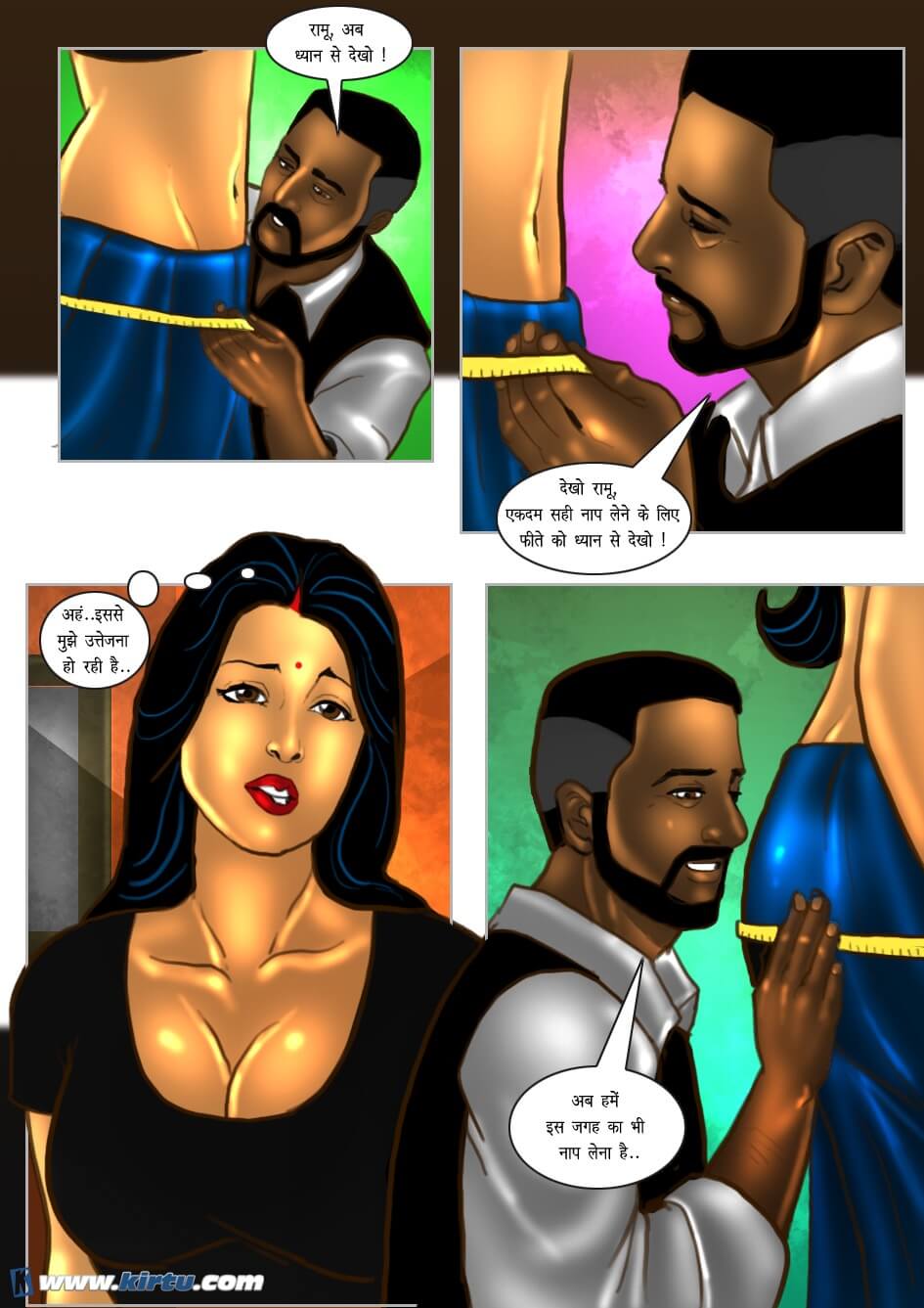 Yes, absolutely right. Shankar, the lustful tailor of this shop, used to touch women's bodies and private parts under the pretext of taking their measurements. The women, too, derived great pleasure from this—so much so that they would even end up having sex with him. Thus, when Savita visited Shankar's shop, he was overjoyed by her hot and sexy figure. Initially, he asked his apprentice to take Savita's measurements. However, employing his usual tactic, he began touching Savita's body here and there under the pretext of teaching his apprentice how to take measurements.