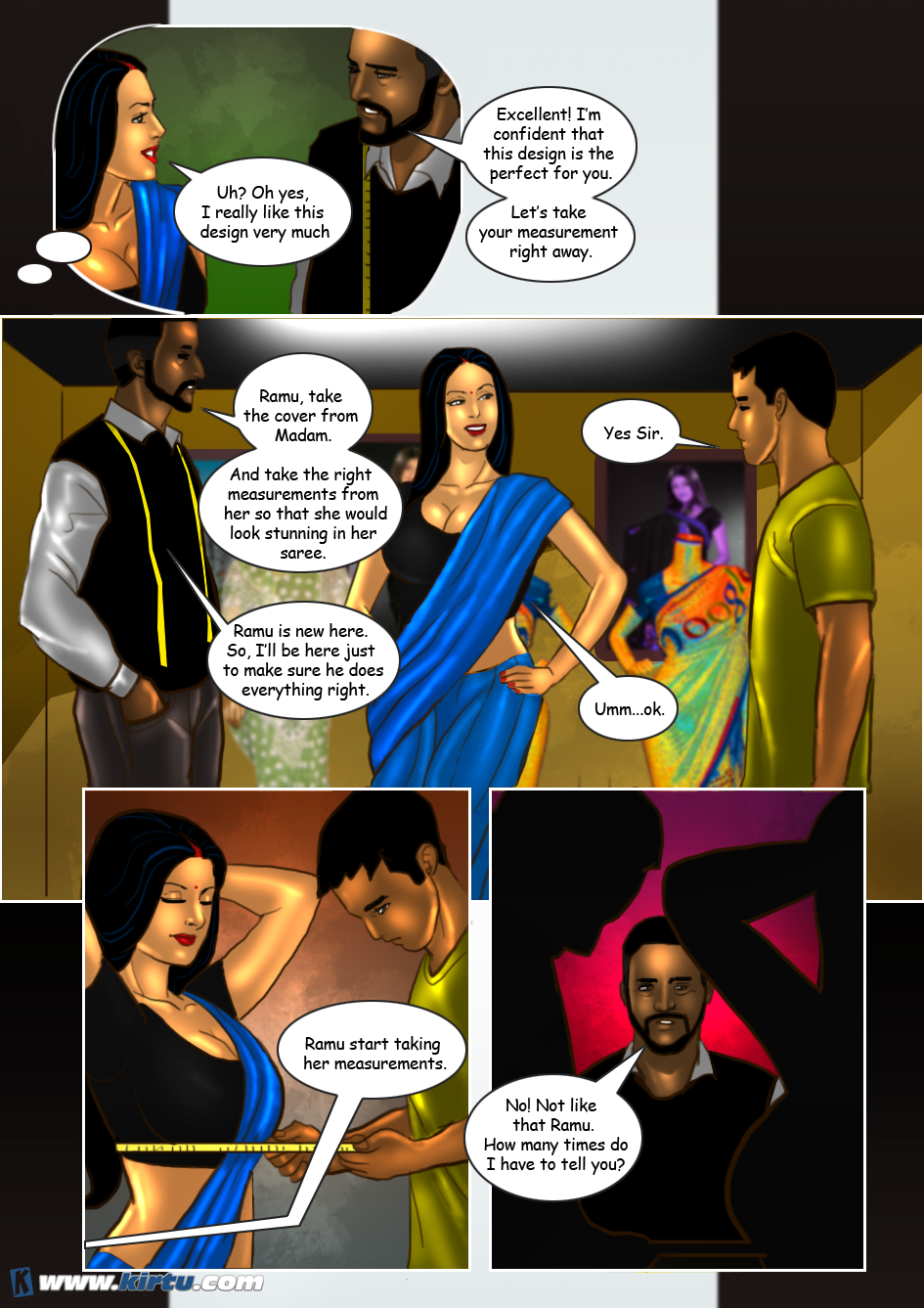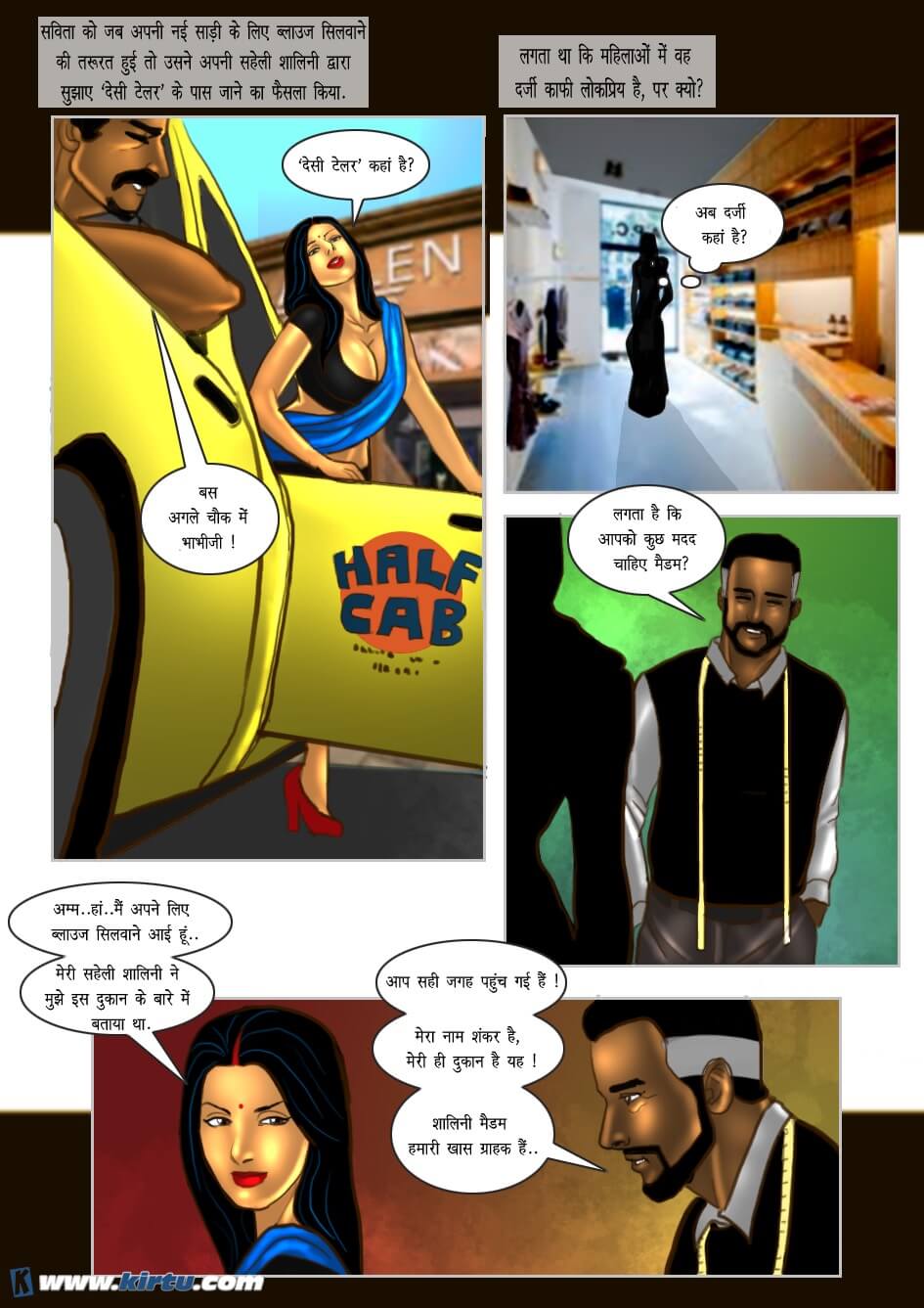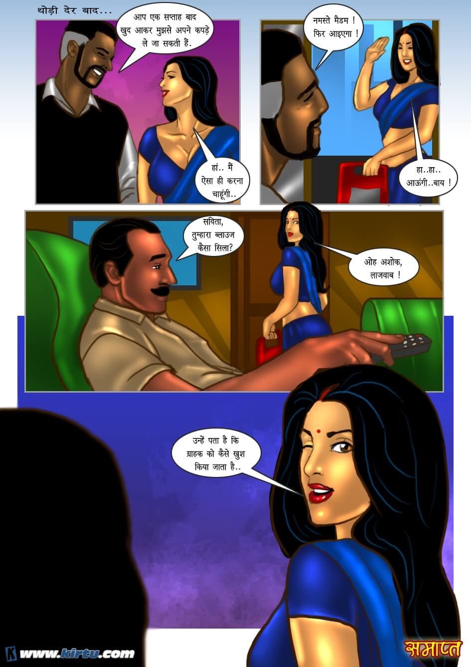 Yes, absolutely right. Shankar, the lustful tailor of this shop, used to touch women's bodies and private parts under the pretext of taking their measurements. The women, too, derived great pleasure from this—so much so that they would even end up having sex with him. Thus, when Savita visited Shankar's shop, he was overjoyed by her hot and sexy figure. Initially, he asked his apprentice to take Savita's measurements. However, employing his usual tactic, he began touching Savita's body here and there under the pretext of teaching his apprentice how to take measurements.