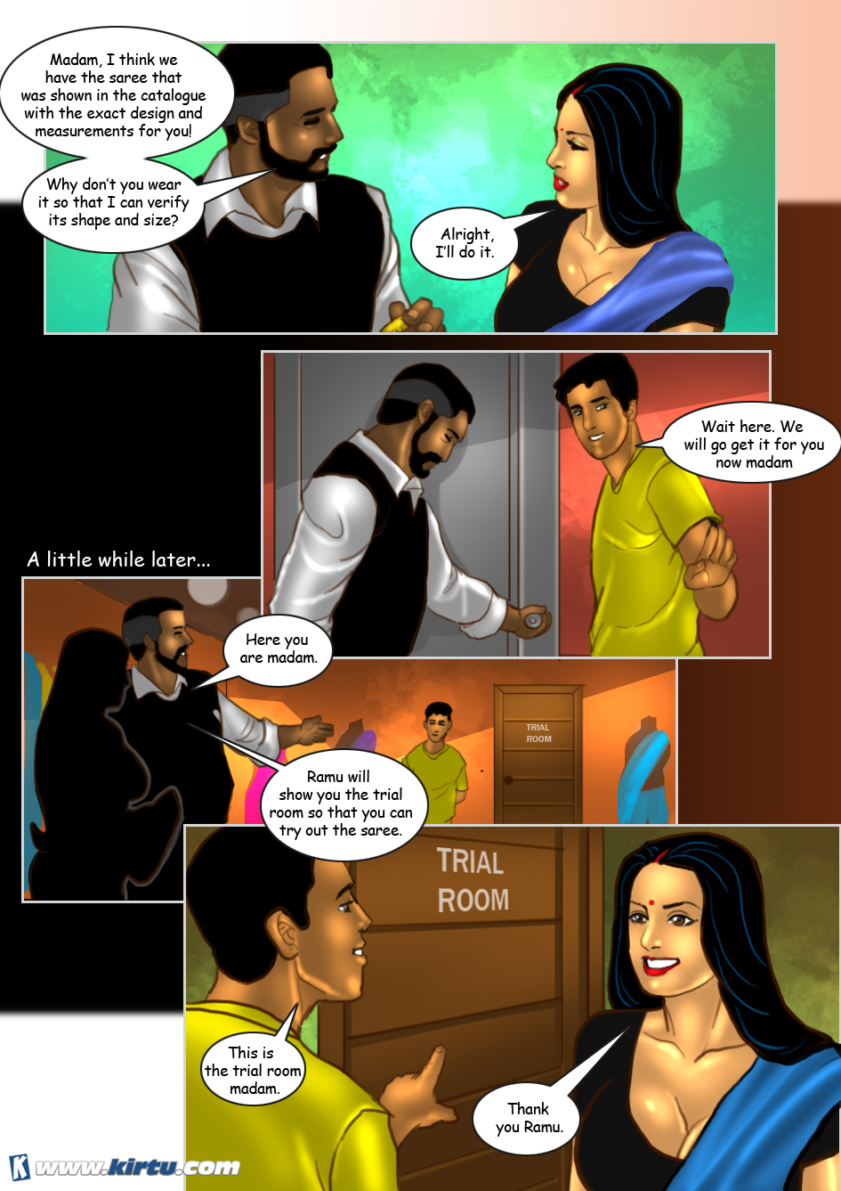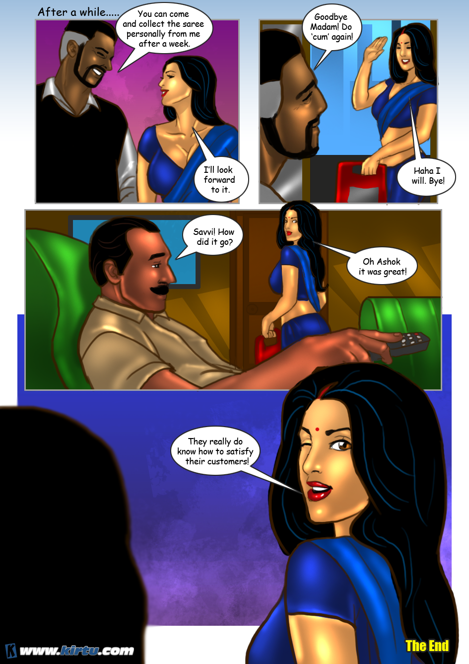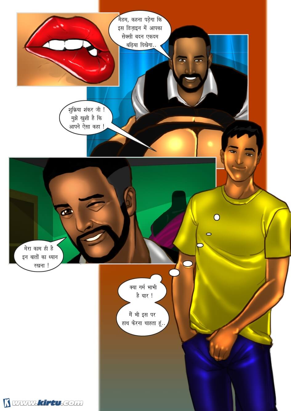 Then, watch how the apprentice catches a glimpse of Savita’s naked body while she is trying on a saree. The master tailor, Shankar, also arouses Savita under the pretext of helping her drape the saree. And finally, discover how he fucks Savita upside down. Will even his apprentice get to taste Savita’s creamy pussy? Find out all in this ‘Savita Bhabhi’s Special Tailor’ episode.