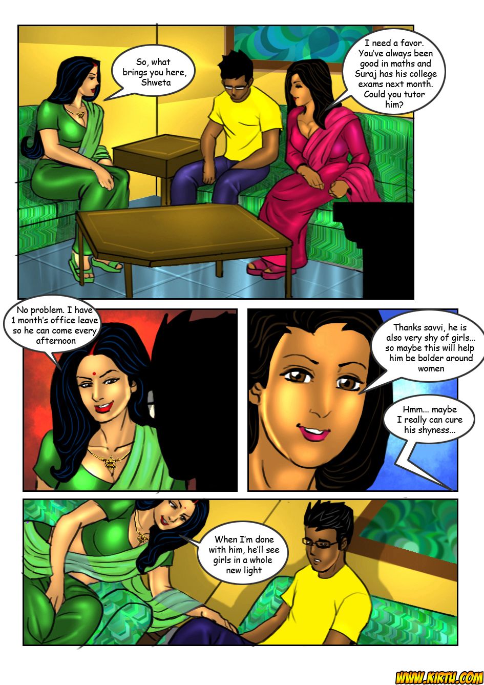 It turns out Savita Bhabhi isn’t just amazing in bed, she’s also sharp with numbers. When her friend asks her to tutor her shy 19-year-old brother Suraj in maths, Savita jumps at the chance. She decides to help him overcome his nervousness around girls at the same time, creating a week-long plan full of seduction. Starting with simple lessons, Savita wears tighter blouses each day, leaning close to show off her massive boobs and deep cleavage while explaining problems. Suraj blushes and stammers, but his eyes keep drifting to her curves. By mid-week, she’s guiding his hands to “feel the right angle,” turning maths into steamy foreplay. The shy boy soon gives in to her charms, leading to passionate encounters that boost his confidence in every way. This erotic Indian porn comic mixes teacher-student fantasy, slow-burn seduction, and raw desi XXX pleasure. Read it completely free in English or Hindi. Catch the animated comic video of this episode too, enjoy the free teaser.